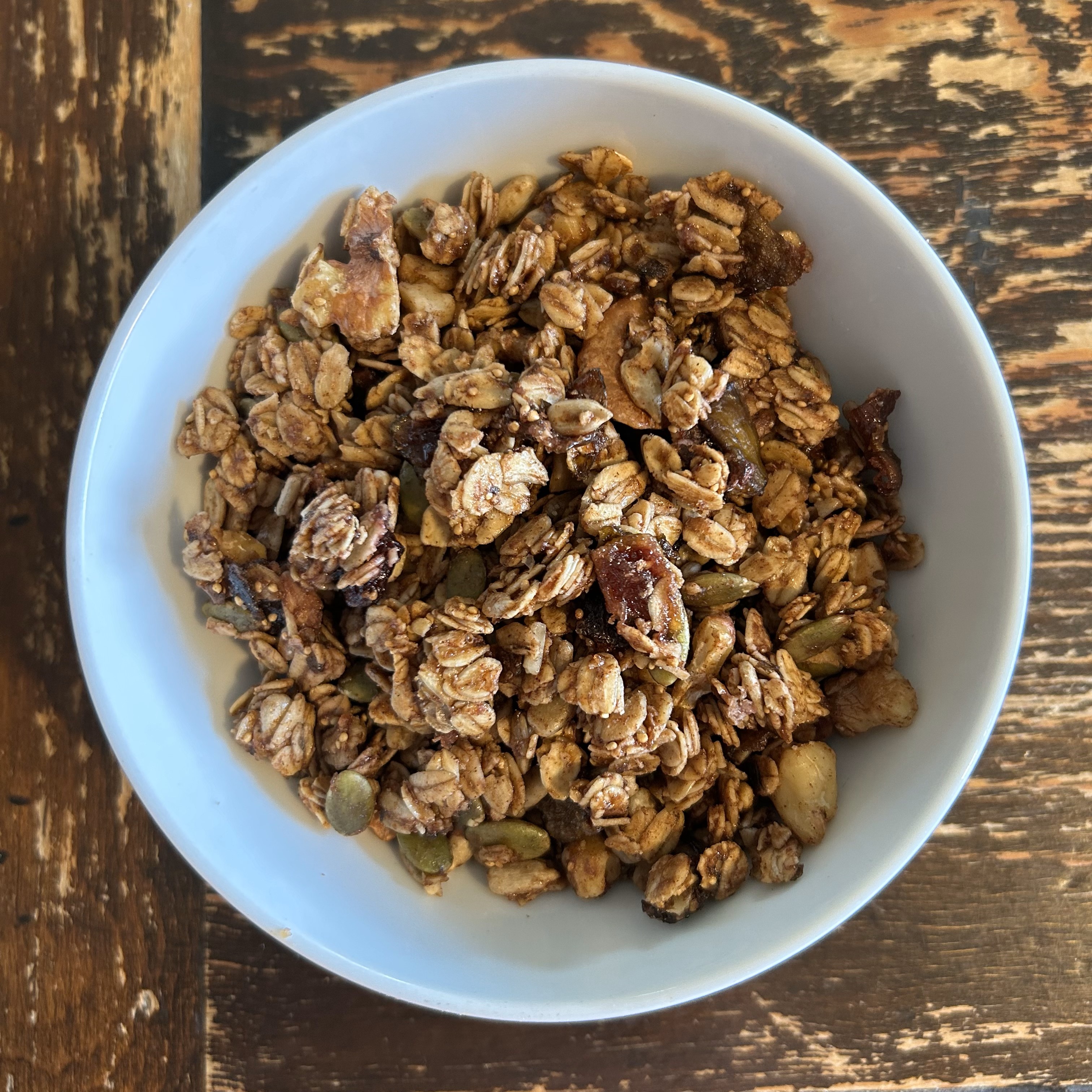 Crunchy granola with walnuts and figs. Warm flavors for the cold and windy autumn weather.